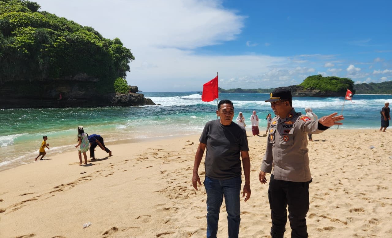 Selain pengamanan, petugas juga memberikan imbauan kepada wisatawan agar mematuhi rambu-rambu keselamatan, khususnya larangan berenang di area pantai yang dipasangi bendera merah.