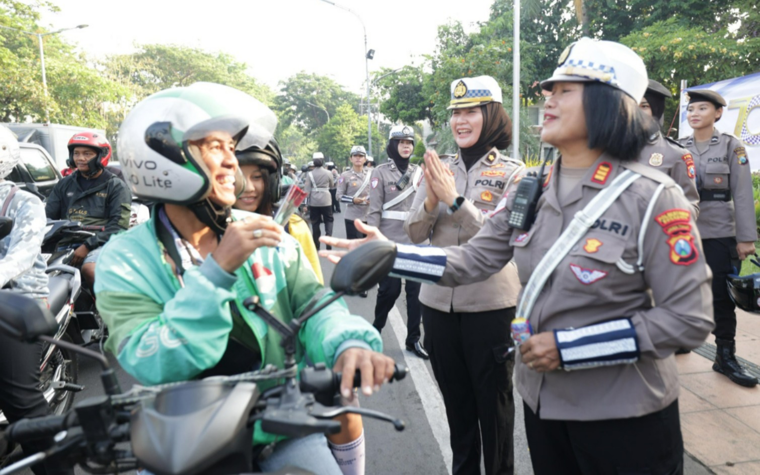 Pakor Polwan Polda Jatim,AKBP Yayuk Sri Wahyuningtyas mengatakan kegiatan ini bukan hanya sekadar gatur lalu lintas, tetapi juga bentuk kepedulian dan apresiasi kami kepada masyarakat yang sudah tertib berkendara