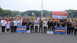 KOTA MALANG – Polresta Malang Kota Polda Jatim bersama Pemerintah Kota Malang dan jajaran TNI gelar Apel Gelar Pasukan Operasi Lilin Semeru 2025 sebagai langkah strategis memastikan kesiapan personel, sarana, dan prasarana pengamanan Natal 2025 dan Tahun Baru 2026 (Nataru) yang dilaksanakan di halaman Balai Malang Malang. (Jumat, 19/12/2525)