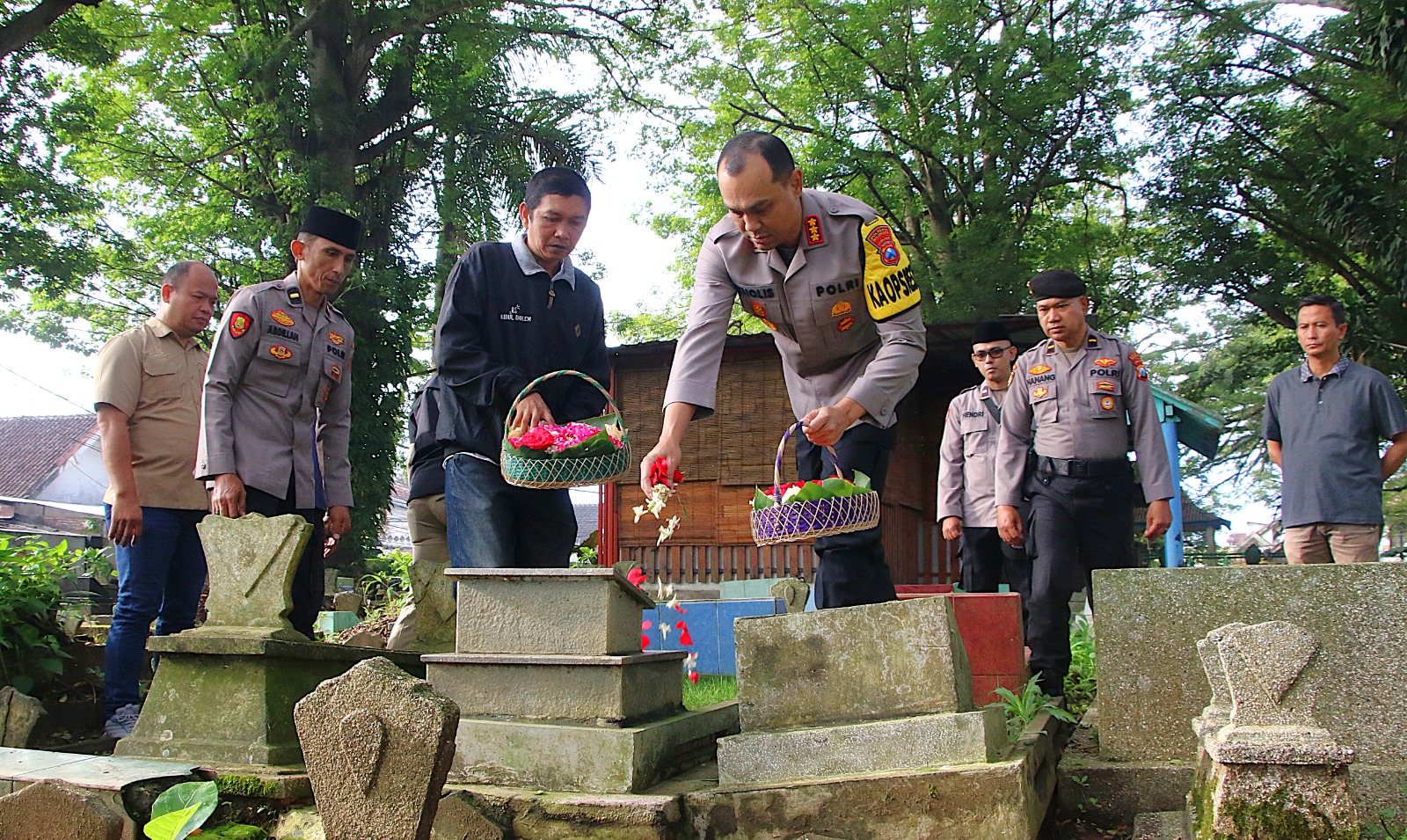 Secara bersamaan, para Pejabat Utama (PJU) dan lima Kapolsek jajaran Polresta Malang Kota juga melakukan ziarah TPU yang berbeda.
