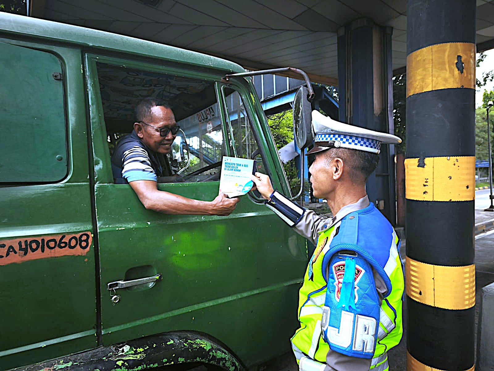 Flyer diantaranya berisi imbauan dan edukasi tentang penggunaan lajur kiri pada jalan tol terutama kendaraan truk dan bus.