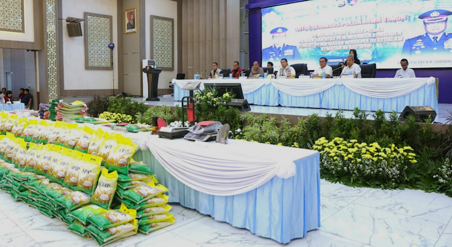 SURABAYA – Direktorat Reserse Kriminal Khusus (Ditreskrimsus) Polda Jawa Timur mengungkap kasus dugaan tindak pidana di bidang pangan dan perlindungan konsumen terkait peredaran beras kemasan program Stabilisasi Pasokan dan Harga Pangan (SPHP) yang tidak sesuai ketentuan.