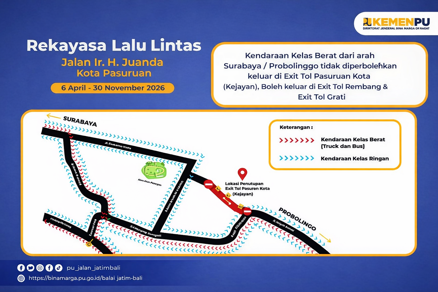KOTA PASURUAN — Penutupan total Jalan Ir H Juanda Kota Pasuruan resmi diberlakukan mulai Rabu (08/04/2026).