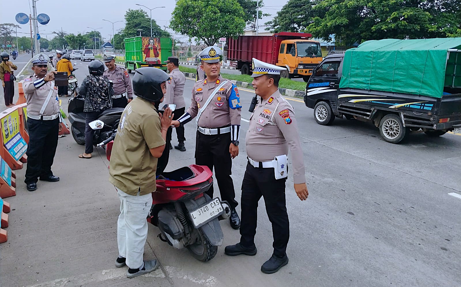 Petugas menyisir area jembatan untuk memantau arus lalu lintas sekaligus memberikan edukasi langsung kepada pengguna jalan.