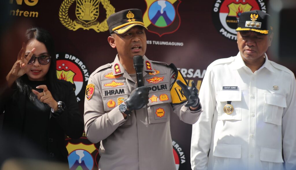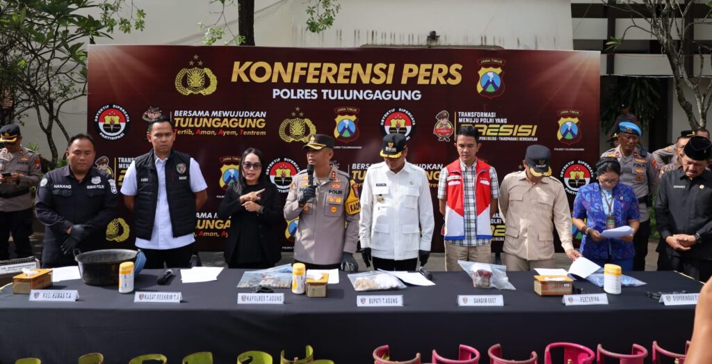 Pengungkapan kasus tersebut disampaikan langsung oleh Kapolres Tulungagung AKBP Dr. Ihram Kustarto kepada awak media usai kegiatan apel gelar pasukan Operasi Ketupat Semeru 2026 yang digelar di halaman Kantor Pemerintah Kabupaten Tulungagung, Kamis (12/03/2026).