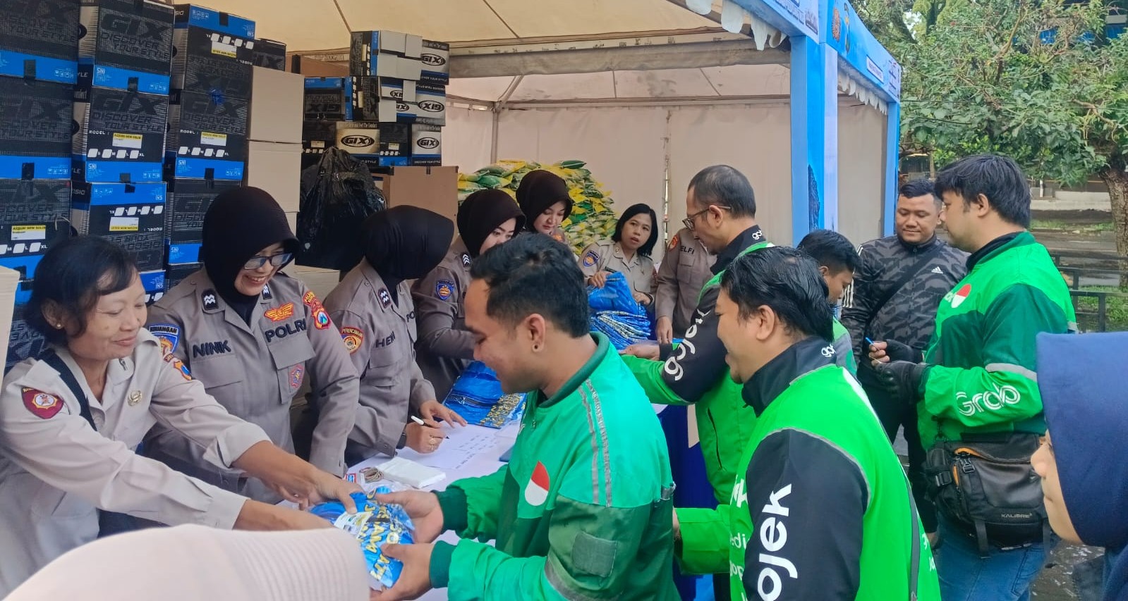 “Kegiatan ini kami laksanakan sebagai bentuk apresiasi atas dedikasi dan kontribusi para Ojol dalam menjaga keamanan serta keselamatan di jalan raya,” ujar Kombes Pol Nanang.