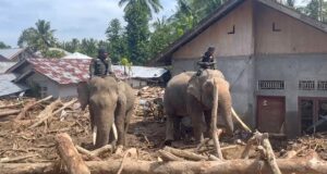 “Empat gajah yang kita datangkan bersama BKSDA Aceh hari ini sudah berada di lokasi. Mereka langsung kita kerahkan untuk menarik kayu-kayu besar serta material berat lainnya yang menumpuk akibat banjir,” ujar Iptu Fauzi.
