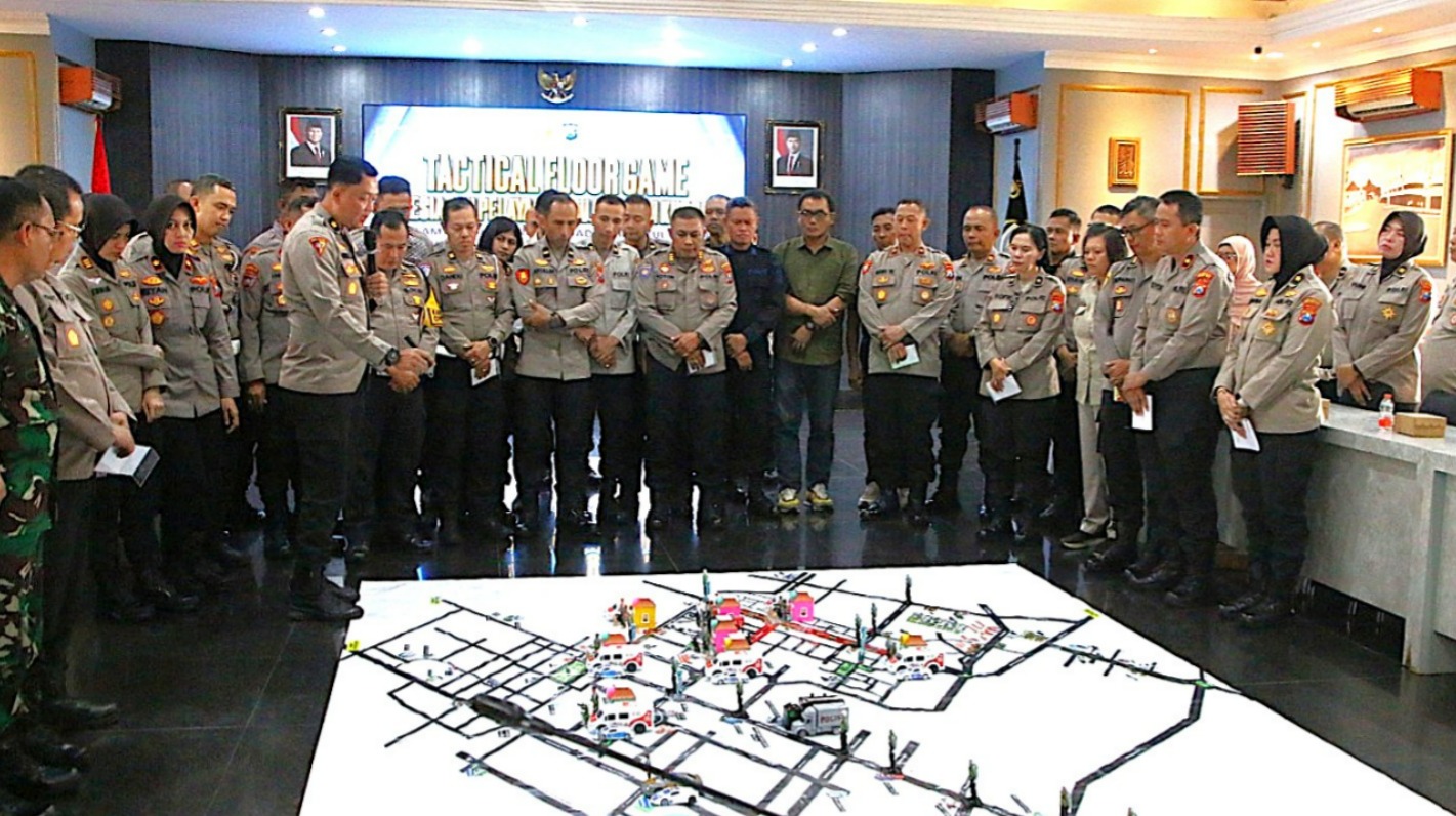 MALANG KOTA – Wujud pelayanan dan pengamanan maksimal bagi masyarakat terus ditunjukkan Polresta Malang Kota, terutama di H-1 pelaksanaan Mujahadah Kubro 1 Abad Nahdlatul Ulama (NU), Kapolresta Malang Kota Kombes Pol Putu Kholis Aryana didampingi Kabag Ops Kompol Wiwin Rusli memimpin Tactical Floor Game (TFG) di Ballroom Sanika Satyawada, (Jumat, 06/02/2026).